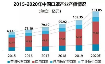 事實上,中國是一個口罩產業大國,生產了全球約50%的口罩。在疫情發生之前,中國口罩最高日產為2000多萬只。2019年,中國大陸地區口罩產量超過50億只,產值高達102.35億元。一年50億只,分到每個人身上也就不到4只,而且在有些高風險的情況下,口罩每4小時就需要更換一次。面對新冠疫情橫行,14億人的需求,這就顯得杯水車薪了。