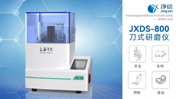 采用上海凈信刀式研磨儀JXDS-800 對(duì)樣品進(jìn)行預(yù)處理, 可以進(jìn)一步提高樣品的均一化程度, 更好地保留分析目標(biāo)化合物, 為食品樣品中待測組分的提取、凈化、濃縮, 進(jìn)行定量、定性分析檢測做好充分準(zhǔn)備, 保證結(jié)果的準(zhǔn)確性和重現(xiàn)性。